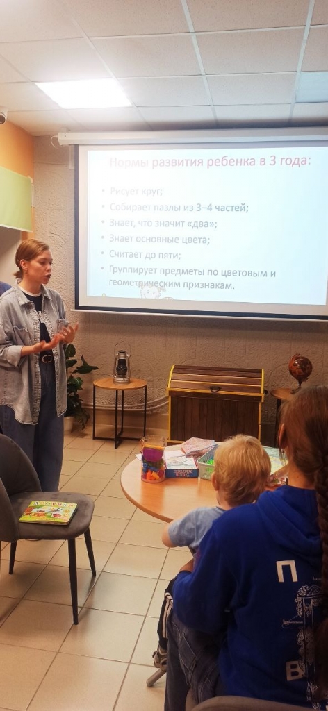 22 октября на базе пространства "СОПКИ. СЕМЬЯ" в рамках межведомственного губернаторского проекта "На Севере - малыш" состоялась встреча специалистов образования с родителями детей от 3 до 5 лет. Участники мероприятия узнали об особенностях развития высших психических функций, эмоционально-волевой сферы у дошкольников младшего и среднего возраста. Родители малышей также получили информацию о том, как поддержать и направить развитие внимания, памяти, мышления и речи у детей при помощи эффективных игр, которые легко применять дома.